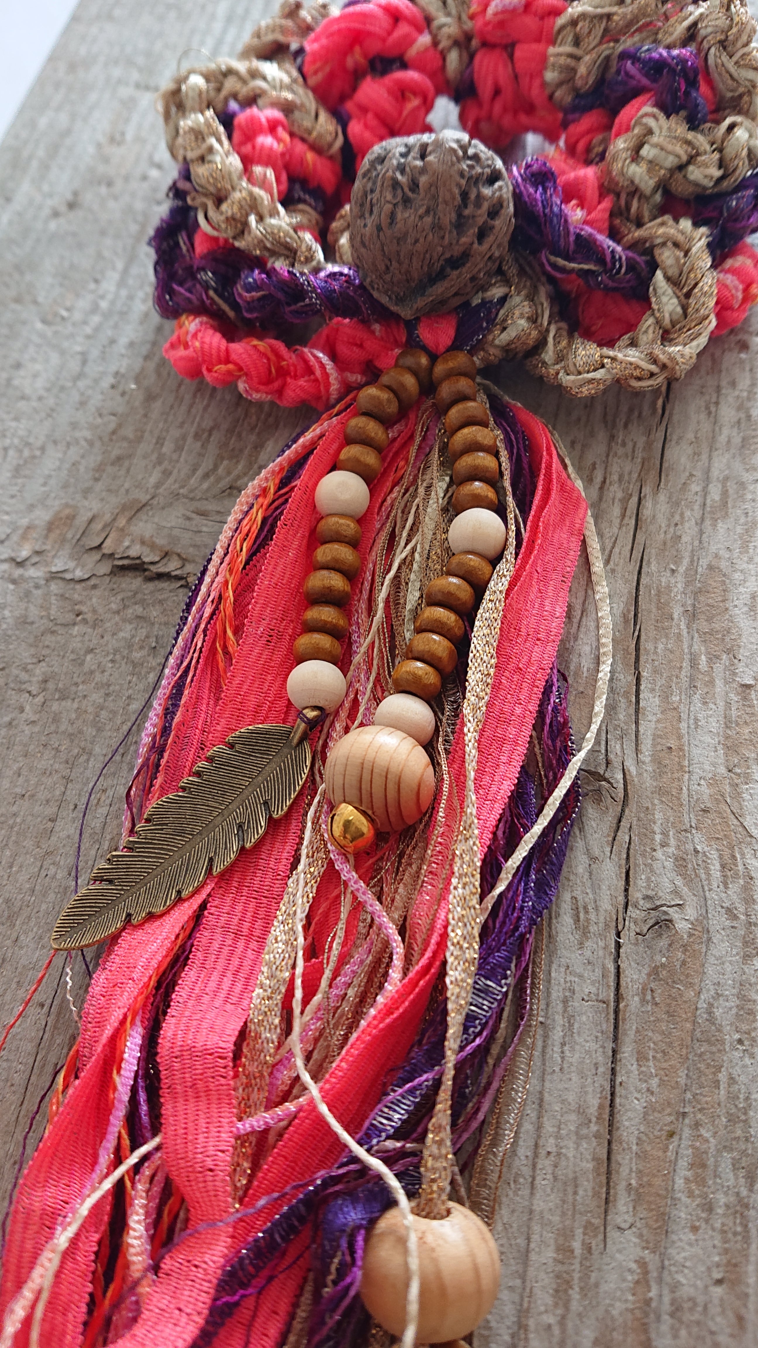 拾い集めるところから加工までお手製のくるみのビーズでなどで飾り付けしてます。